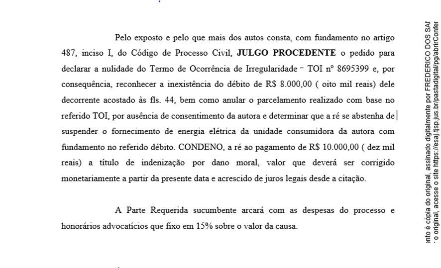 Porém, o TOI não tem valor absoluto e pode ser anulado judicialmente quando é emitido em desacordo com as regras legais e técnicas da ANEEL.